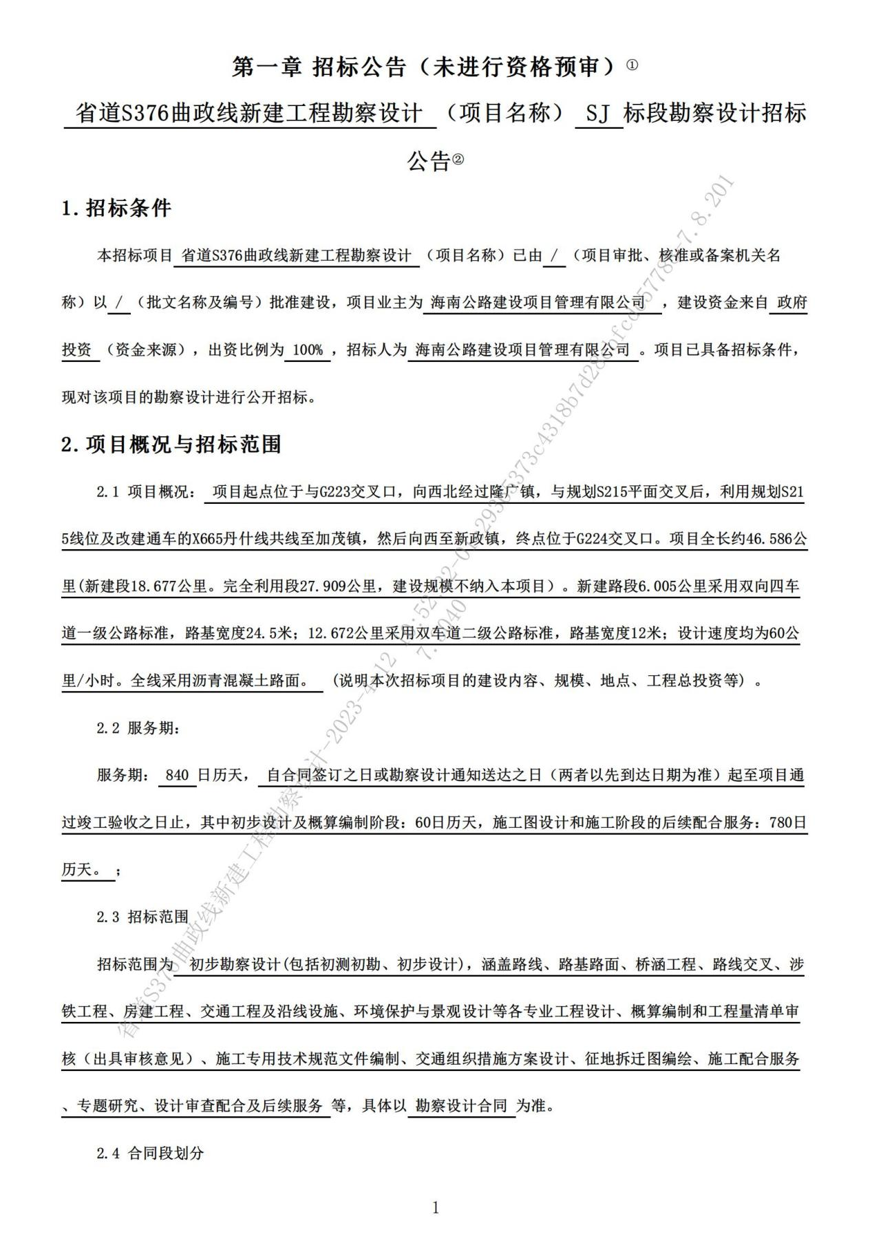 省道S376曲政線新建工程勘察設計招標公告